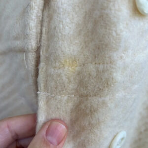 In good vintage condition. A few moth bite spots, I’ve tried to picture as best as I can. A small stain but it’s on the inside of where the buttons do up, so not noticeable on.