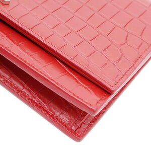 YVES SAINT LAURENT Kate Tassel Crossbody Bag crafted in crocodile-embossed leather with a bold red finish. Features the iconic YSL logo and elegant tassel detail for a statement look. Slim, structured design with a chain strap, perfect for evening and formal wear.