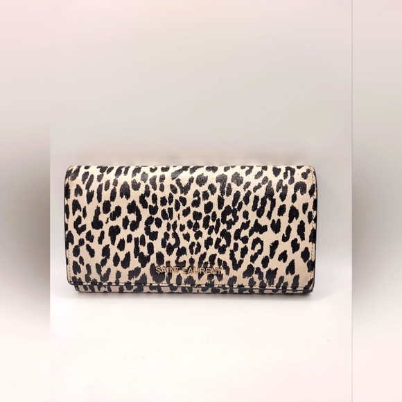 Yves Saint Laurent Leopard Print Calfskin Bifold Wallet Clutch YSL