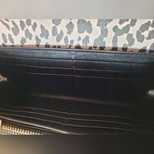 Add a touch of luxury to your wardrobe with this stunning Yves Saint Laurent bifold wallet clutch. Crafted from high-quality calfskin leather in a bold leopard print, this wallet is the perfect accessory for any fashion-forward woman. The wallet features multiple compartments for cards, cash, and coins, as well as a spacious bill compartment.