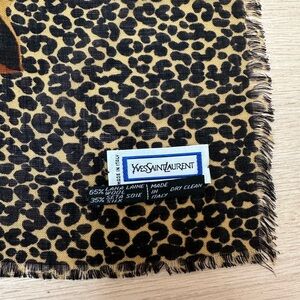 Elegant Yves Saint Laurent scarf with bold leopard pattern. Perfect for a stylish accent. No box or papers included.