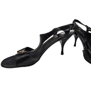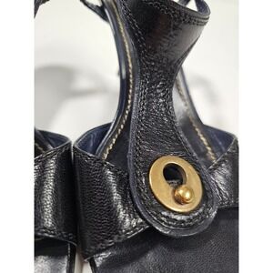 Yves Saint Laurent Lock 100 Sandal Bora ladies size 39. Comprised of finest leather and Brass hardware. The leather is black & Klein Blue. These heels are in great condition and worn just a couple of times. Sizing ankle strap to make for a comfortable fit. Purched items ship out the next day.