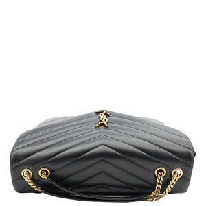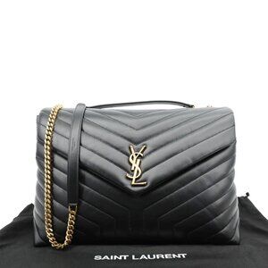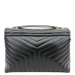 The Yves Saint Laurent Loulou Large Quilted Leather Crossbody Bag Black features soft chevron-quilted leather with the iconic YSL hardware. Its spacious interior and adjustable chain strap make it perfect for chic everyday use.