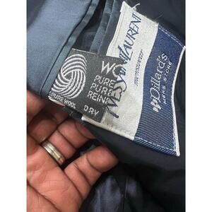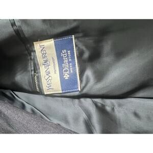 This authentic Yves Saint Laurent men’s wool suit is a French-made, premium-quality piece designed exclusively for Dillard’s Men’s Store. Crafted from pure new wool, this suit delivers exceptional structure, drape, and comfort. The dark navy base and understated blue pinstripe make it ideal for business, formal events, weddings, or upgrading any professional wardrobe.