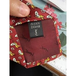 YvesSaintLaurent Mens TIE Silk Classic Red Floral Pattern 100% Silk
