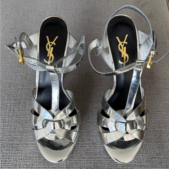 Yves Saint Laurent Metallic Silver Tribute Heels Size 37 - US7