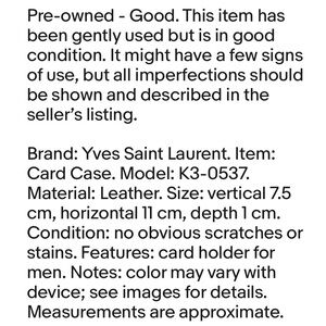 Sophisticated leather wallet by Yves Saint Laurent. Features embossed logo and refined style.