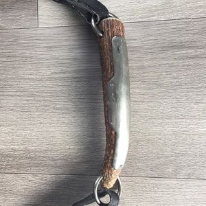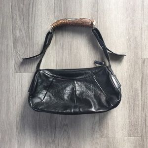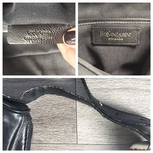 Authentic YSL Mombasa bag with deer horn handle. Good condition. No authenticity cards or dust bag, I lost them long ago. A few dings on the metal handle and signs of wear on the leather part of the handle as shown in pics. The wear is on both sides of both handles. Leather body is perfect, as is interior (a bit dusty). The holes to alter strap length have stretched over time so sometimes the strap slips open. I loved this purse, but I haven't worn it in years. Prices to sell due to wear. XO