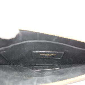 Yves Saint Laurent Monogram Grain De Poudre Chevron Leather Zip Pouch Black