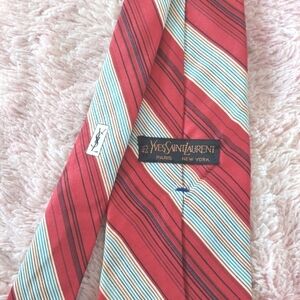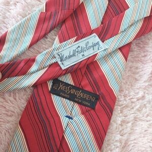 Yves Saint Laurent Neck Tie In Red WithLight Blue Stripes Silk