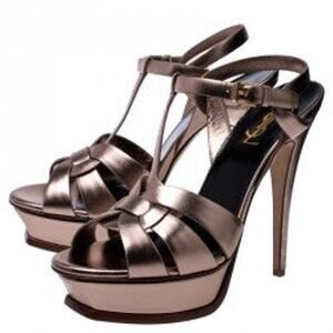 Yves Saint Laurent Paris Metallic Bronze Leather Tribute Platform Heels - 7