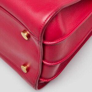 The exterior leather is clean with light rubbing and soiling on the corners. It appears to have been re-dyed. The base has scratches. The handles remain clean and the strap is lightly creased. The metal feet and hardware has surface scratches and fading. The interior is clean overall but the suede lining has rubbing.