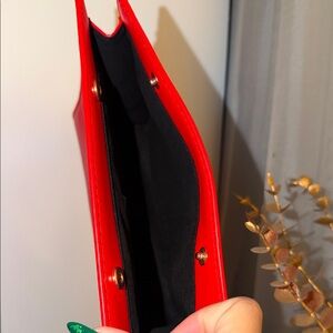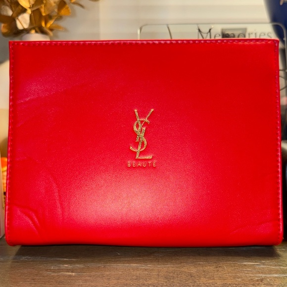 Elegant red Yves Saint Laurent Makeup Pouch YSL Beaute Shiny RED Clutch Cosmetic NEW