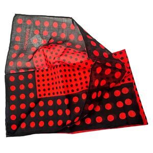 Yves Saint Laurent Red & Black Dot Vintage Handkerchief / Pocket Square / Scarf