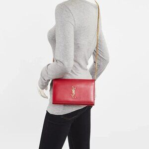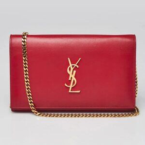 Yves Saint Laurent Red Leather Monogram Wallet on Chain Bag