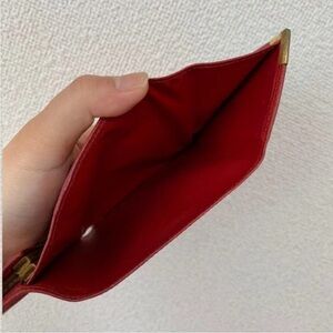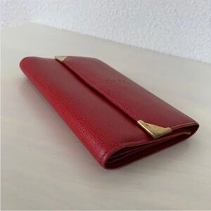 Yves Saint Laurent Red Leather Wallet with Gold Details