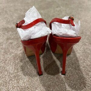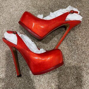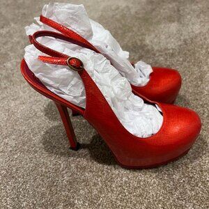 - Yves Saint Laurent Red Patent Leather Tribtoo Platform Slingback Pumps Size 7.5