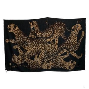 Yves Saint Laurent Shawl Massive Leopard Foulard Silk Wool 84in YSL Vintage Rare