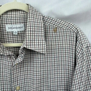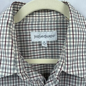 Yves Saint Laurent Shirt, Button Front, Check, Plaid, Blue White Red, Neck 16