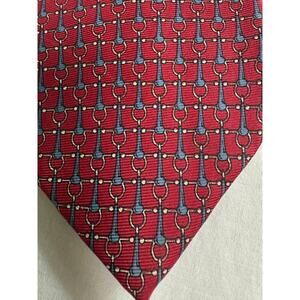 Elevate your style with this sophisticated Yves Saint Laurent silk tie! The striking red and blue pattern adds a touch of elegance to any outfit. Made in the USA, this tie is a testament to quality craftsmanship and timeless design. Perfect for both formal occasions and adding a pop of color to your everyday look