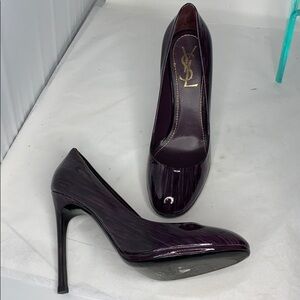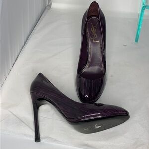 Yves Saint Laurent Sz 38 Black Purple Patent Heels