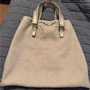 Yves Saint Laurent Tan Canvas Tote with Gold Accents