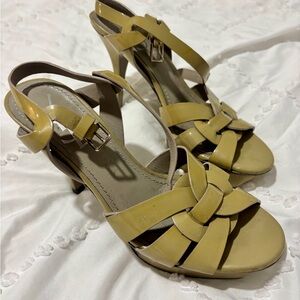 Chic Yves Saint Laurent heels in tan. Sleek design with a high stiletto. Perfect for elevating any outfit.