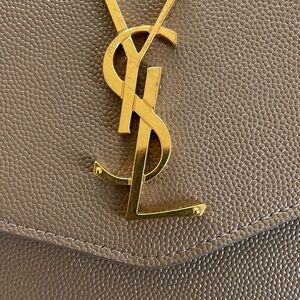 Yves Saint Laurent Taupe Uptown Leather Wallet on Chain