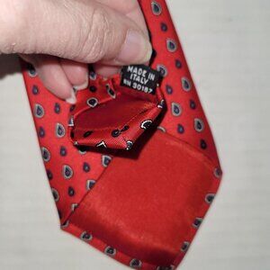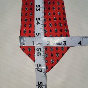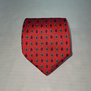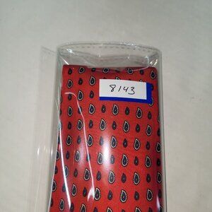 Yves Saint Laurent Tie Men One Size Red Paisley Print Silk Handmade Necktie