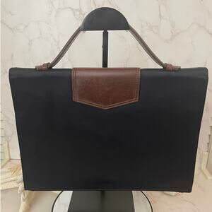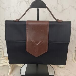 Yves Saint Laurent Top Handle Black Nylon Bag with Brown Leather Trim