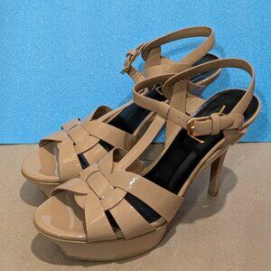 Yves Saint Laurent Tribute Platform Sandals, Beige, Leather, size 37 / US 7