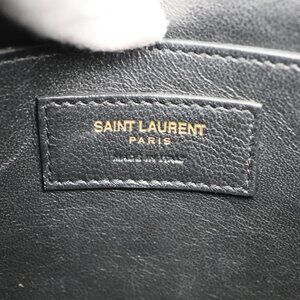 The YVES SAINT LAURENT Vicky Medium Vertical Quilted Leather Chain Crossbody Bag in Black features a quilted leather exterior with a metallic YSL logo. This stylish bag offers a chain strap for crossbody wear and a flap closure with a push-lock.
