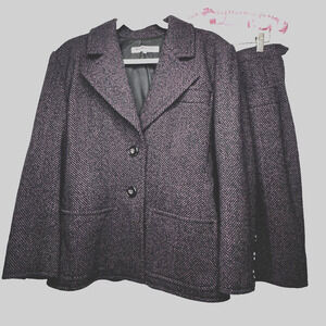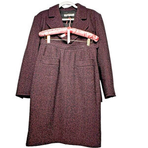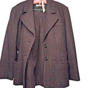 Yves Saint Laurent Vintage Herringbone Bouclé Wool Blazer 40 and Skirt 42 Set