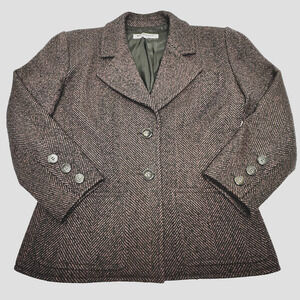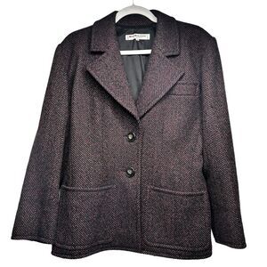 Color: Red black blue gray herringbone boucle tweed style PLEASE SEE CLOSE UP PHOTOS FOR A BETTER IMAGE OF COLOR.