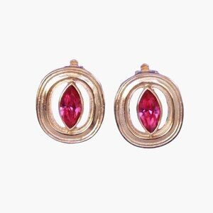 Yves Saint Laurent Vintage Jewelry Set. With its beautiful gold tones, it holds oval shaped pendants linked together and each one is holds a pink gemstone. The necklace is a gold collar necklace and adjustable with the "s" hook and chain link. The earrings are clip-ons with a spring clasp. They match the necklace. Stamped. Has been authenticated by my local jeweler BUT Poshmark will also authenticate for you!