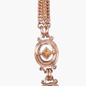 Saint Laurent vintage jewelry set in pink gold. The set includes clip-on earrings and an S hook closure necklace. Kept in a clean, smoke-free home.