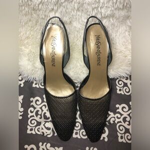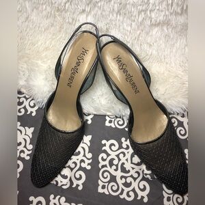 Yves Saint Laurent Vintage Metallic Black Slingback Heels size 9
