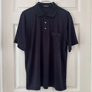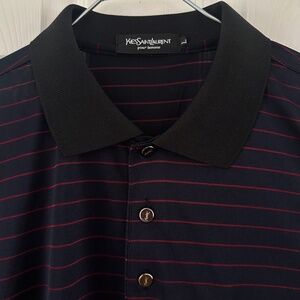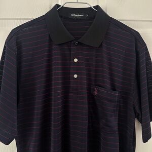 Yves Saint Laurent Vintage Silk Striped Polo Navy Blue Red Men’s Size Large