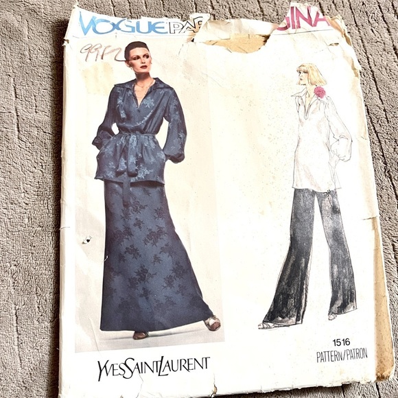 Vogue Paris Original YvesSaintLaurent uncut pattern in preowned condition.