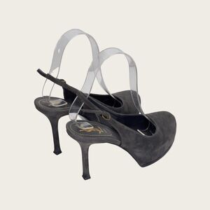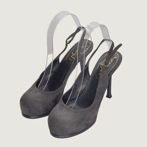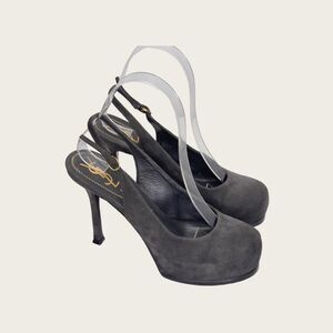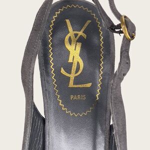 Yves Saint Laurent Womens Tribtoo Slingback Heel Gray Suede Buckle Ultra High 6