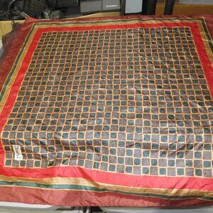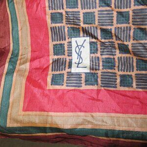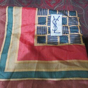 Yves Saint Laurent YSL 100% silk scarf greens & Reds with yellow & green 34X33