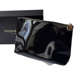 Yves Saint Laurent YSL Beaute Makeup Bag Travel Pouch Black Patent Clutch