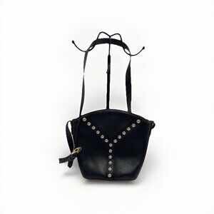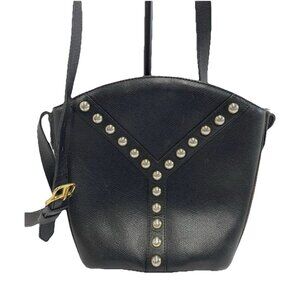 Vintage Yves Saint Laurent YSL Studded Leather Crossbody Bag Black Gold