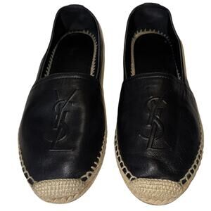 Yves Saint Laurent YSL Black Leather Logo Espadrilles Women’s 39.5