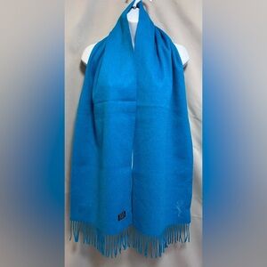 Yves Saint Laurent YSL Blue Wool Logo Fringe Scarf 70”x 12”
