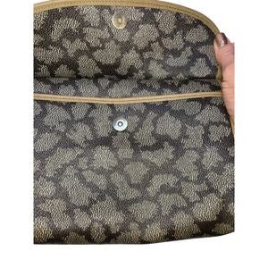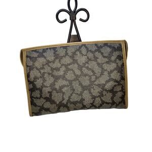 Elegant vintage YSL clutch featuring a distinctive giraffe print on coated canvas with leather trim. Includes an exterior pouch and zip-top closure for a timeless, sophisticated look. A rare and stylish designer piece that captures YSL’s signature luxury aesthetic.