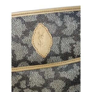 yves saint laurent clutch, ysl bag, giraffe print purse, designer clutch, vintage ysl, coated canvas bag, leather trim clutch, elegant handbag, luxury evening bag, french designer accessory