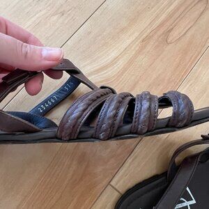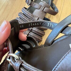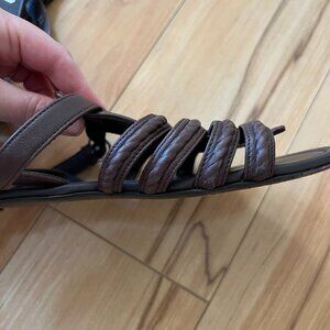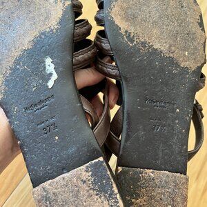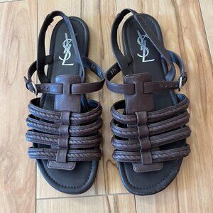 Yves Saint Laurent YSL Gladiator Flat Sandals Dark Brown Leather size 37.5