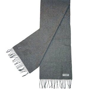 Elevate your winter, fall, or spring wardrobe with this stylish Yves Saint Laurent YSL Gray with Blue Embroidery Wool Fringed Scarf.