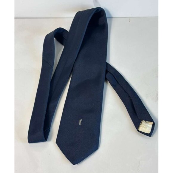 Yves Saint Laurent YSL Mens Tie Blue 100% Silk Classic Necktie Designer Vintage